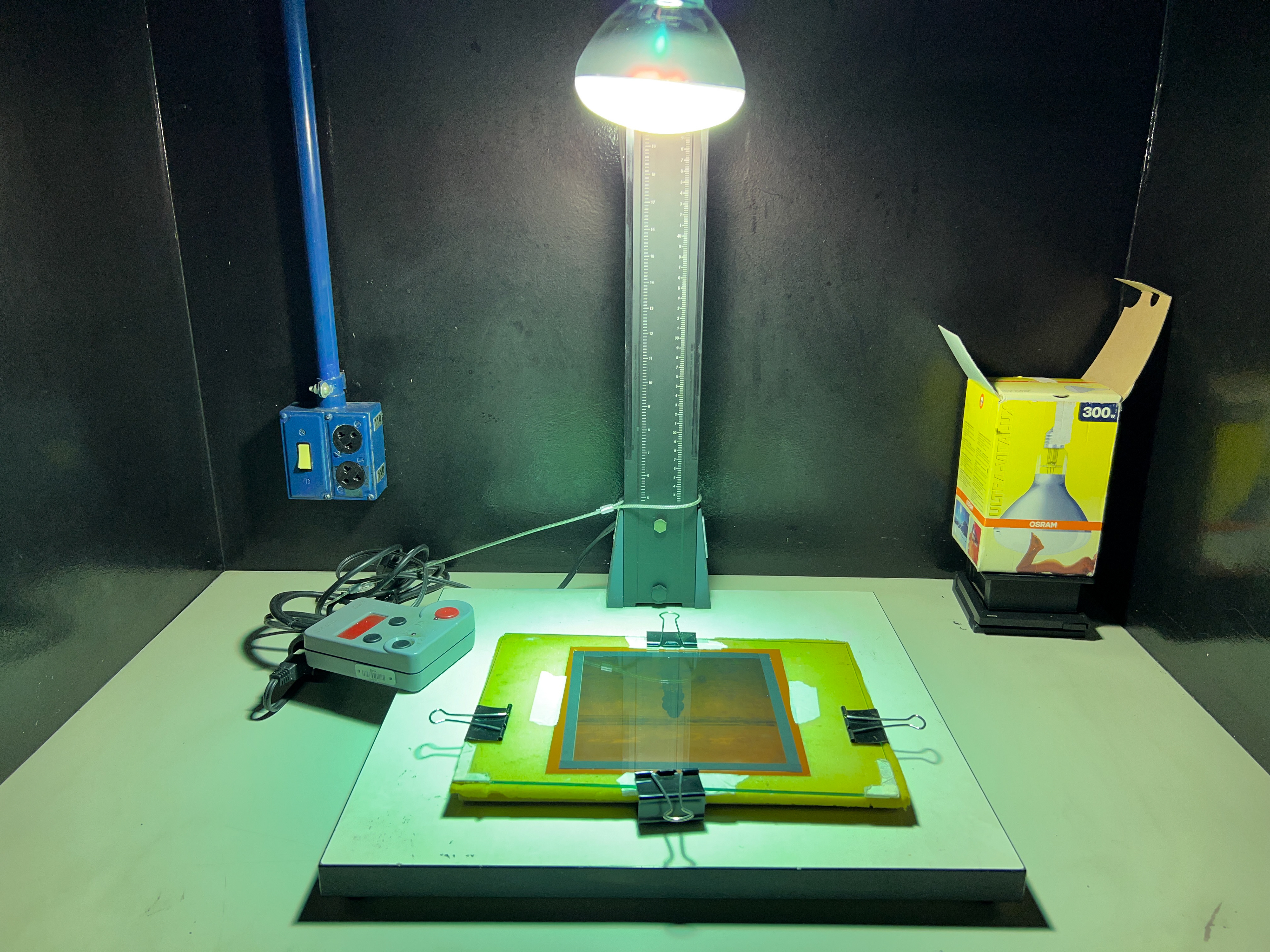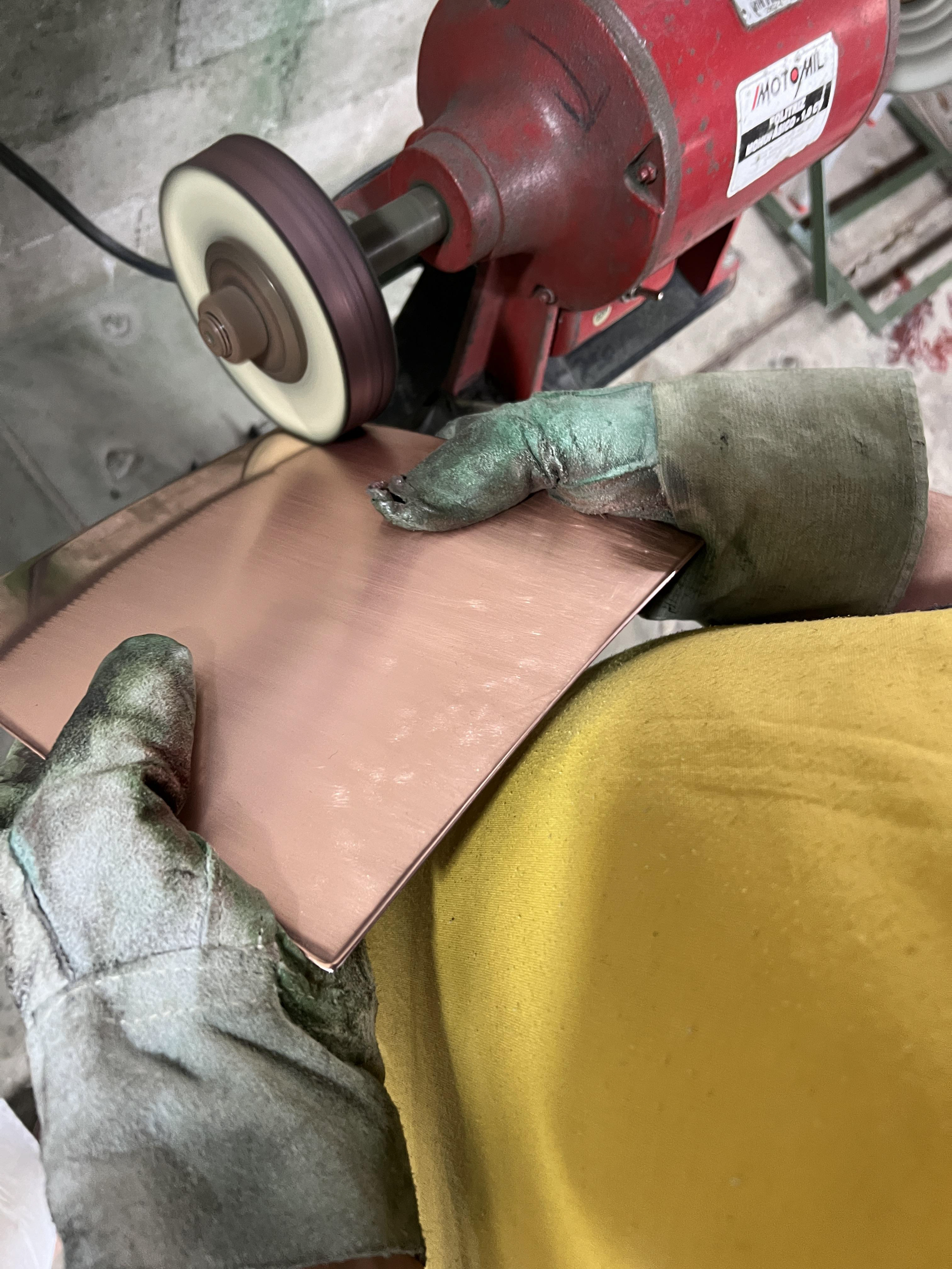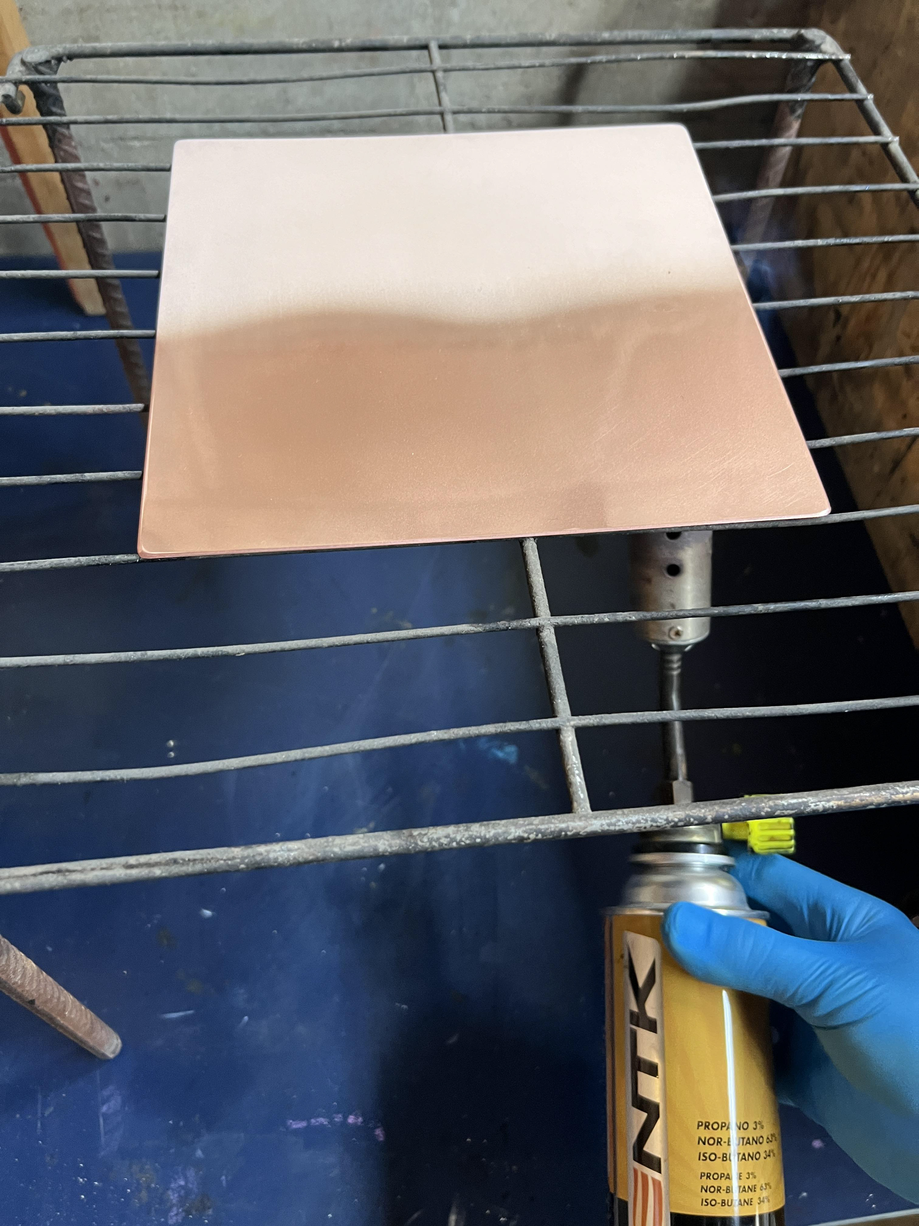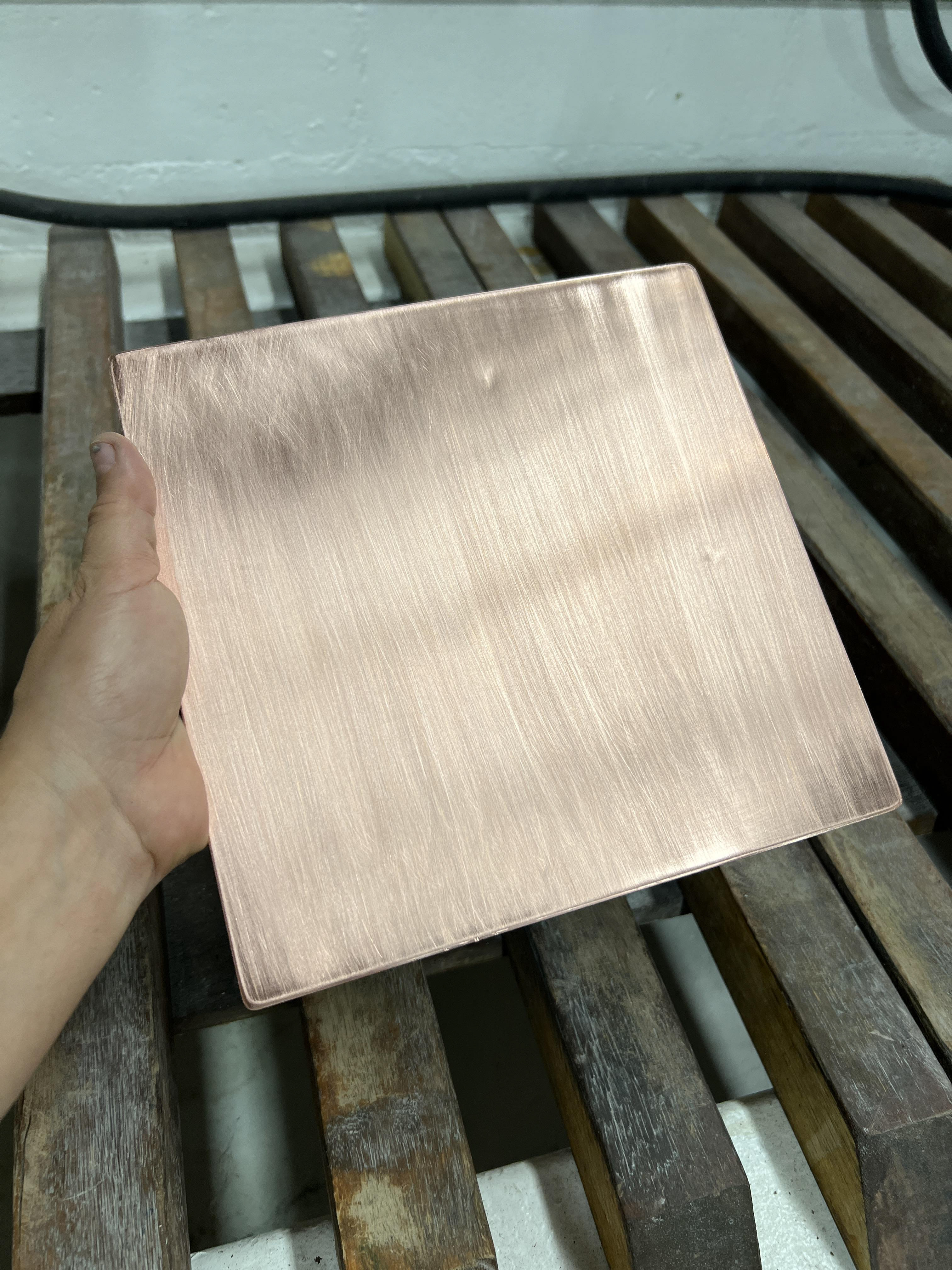 chapa de cobre 20 x 20 cm com a imagem fixada para gravação